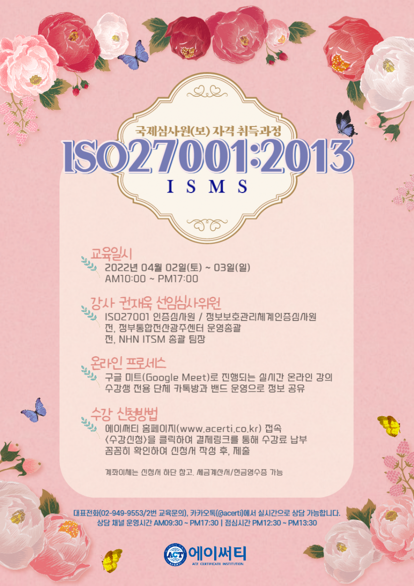 (22년/04월) ISO27001(ISMS) 정보보안경영시스템 교육 안내